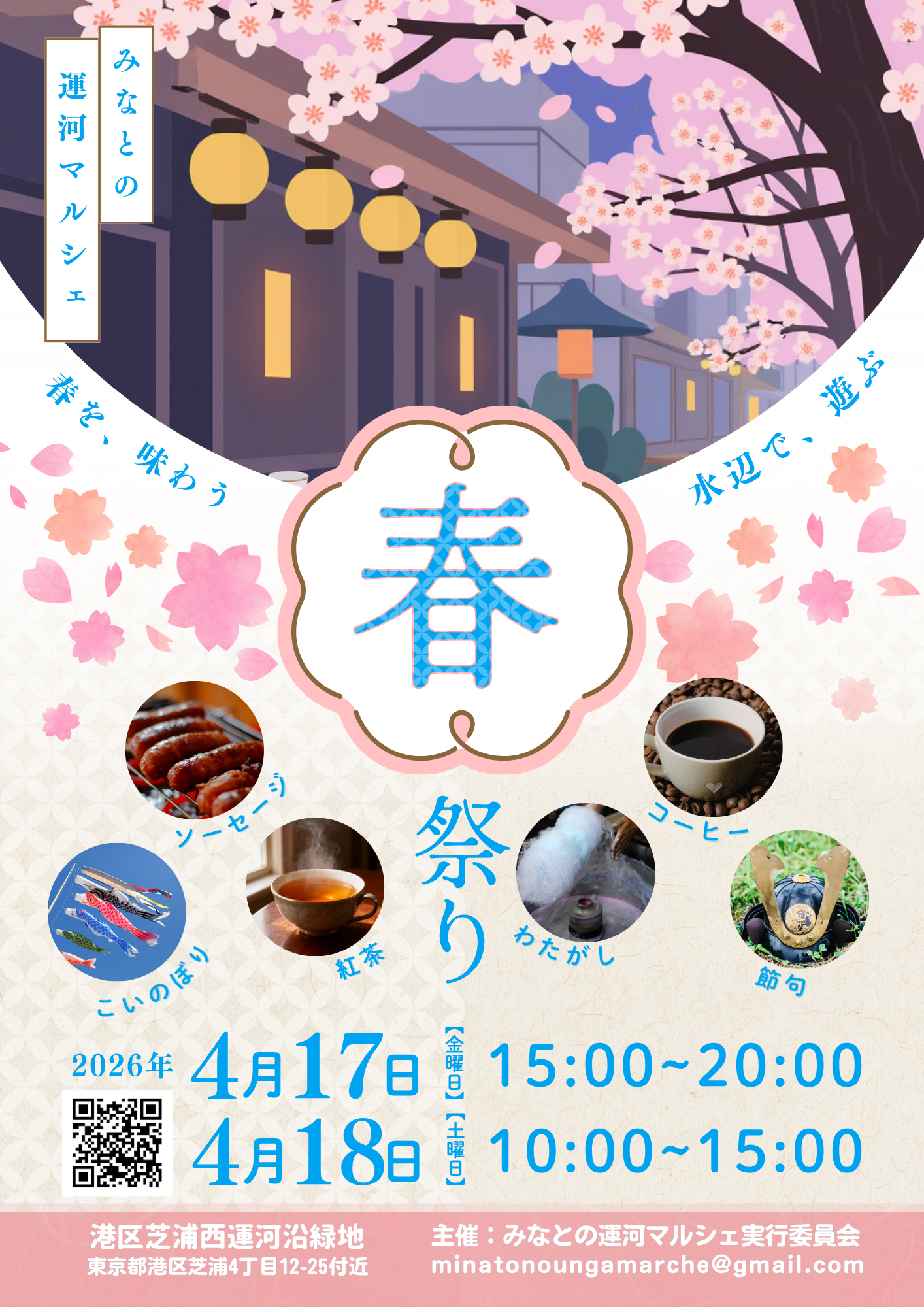 4/17に東京都港区で行われるみなとの運河マルシェに出店させていただくことが決定いたしました!!