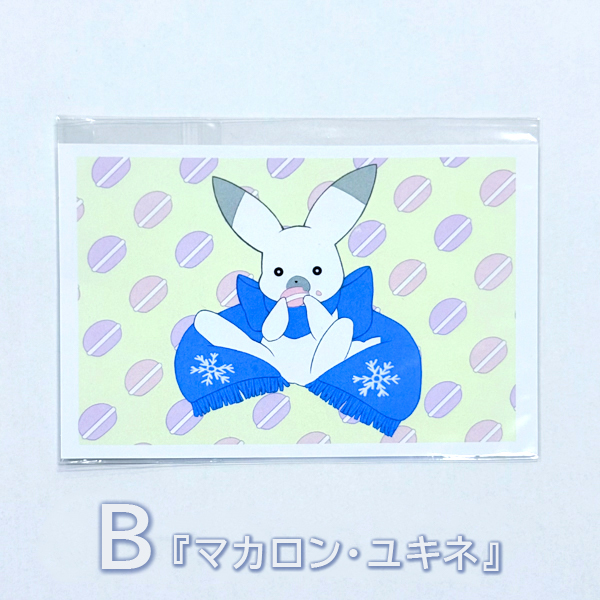 北海道生まれのユキネらしい、やさしい色合いと楽しい雰囲気が魅力のマカロンと一緒のラビット・ユキネ。