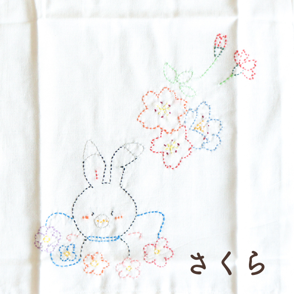 ■商品名:「ラビット・ユキネ」恵庭の街の花ふきん(さくら・水やり)■素材:綿 ■サイズ:高さ 33cm 横幅 33cm ■重量:約8 g ■製造国:日本